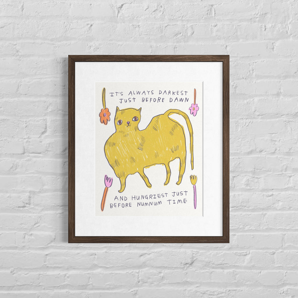8"x10", 11"x14", or 16”x20” print. The smaller two sizes are printed by me on heavyweight matte paper using archival pigment-based inks. The larger size is too big for my fine art printer, so I outsource them, but they’re the same archival quality. All this means that these are high quality prints that will last for 100 years or so without beginning to fade. Because that's vital with super important art like this.