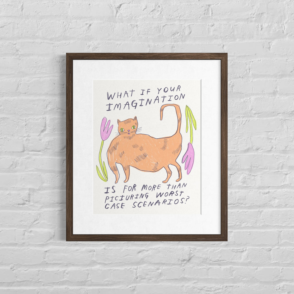 8"x10", 11"x14", or 16”x20” print. The smaller two sizes are printed by me on heavyweight matte paper using archival pigment-based inks. The larger size is too big for my fine art printer, so I outsource them, but they’re the same archival quality. All this means that these are high quality prints that will last for 100 years or so without beginning to fade. Because that's vital with super important art like this.