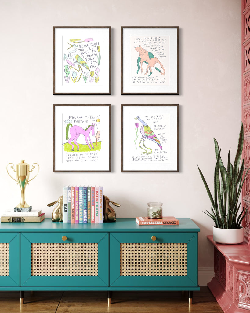 8"x10", 11"x14", or 16”x20” print. The smaller two sizes are printed by me on heavyweight matte paper using archival pigment-based inks. The larger size is too big for my fine art printer, so I outsource them, but they’re the same archival quality. All this means that these are high quality prints that will last for 100 years or so without beginning to fade. Because that's vital with super important art like this.