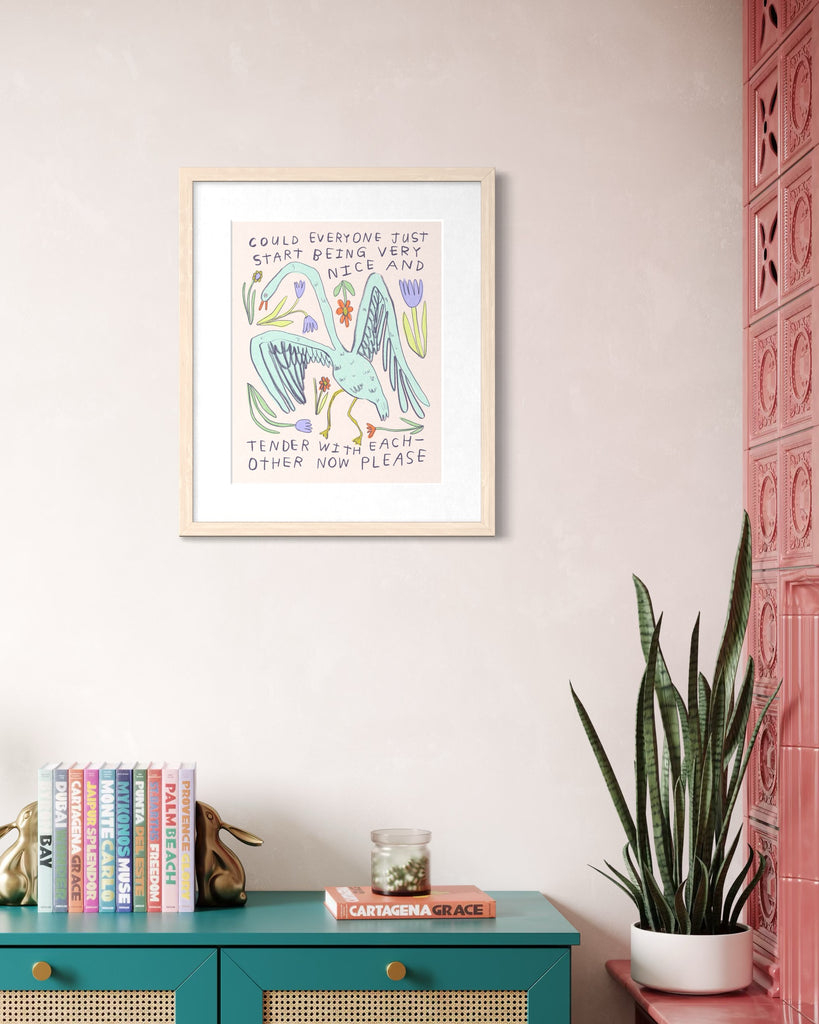 8"x10", 11"x14", or 16”x20” print. The smaller two sizes are printed by me on heavyweight matte paper using archival pigment-based inks. The larger size is too big for my fine art printer, so I outsource them, but they’re the same archival quality. All this means that these are high quality prints that will last for 100 years or so without beginning to fade. Because that's vital with super important art like this.