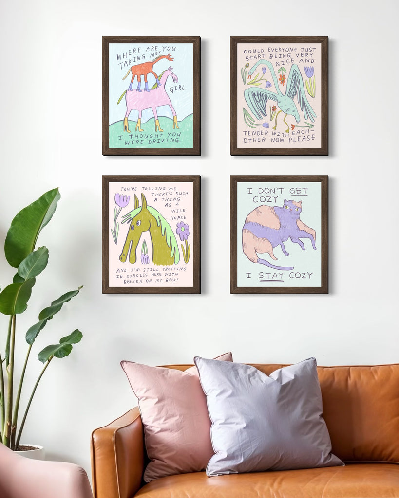 8"x10", 11"x14", or 16”x20” print. The smaller two sizes are printed by me on heavyweight matte paper using archival pigment-based inks. The larger size is too big for my fine art printer, so I outsource them, but they’re the same archival quality. All this means that these are high quality prints that will last for 100 years or so without beginning to fade. Because that's vital with super important art like this.
