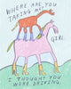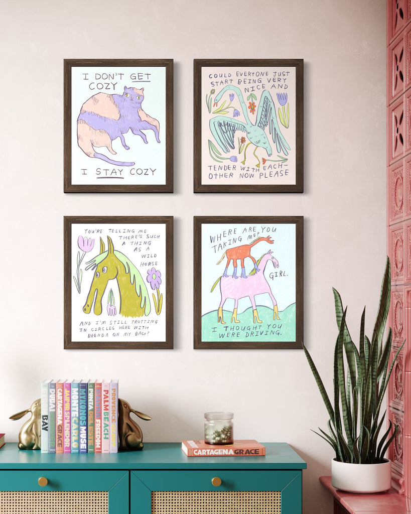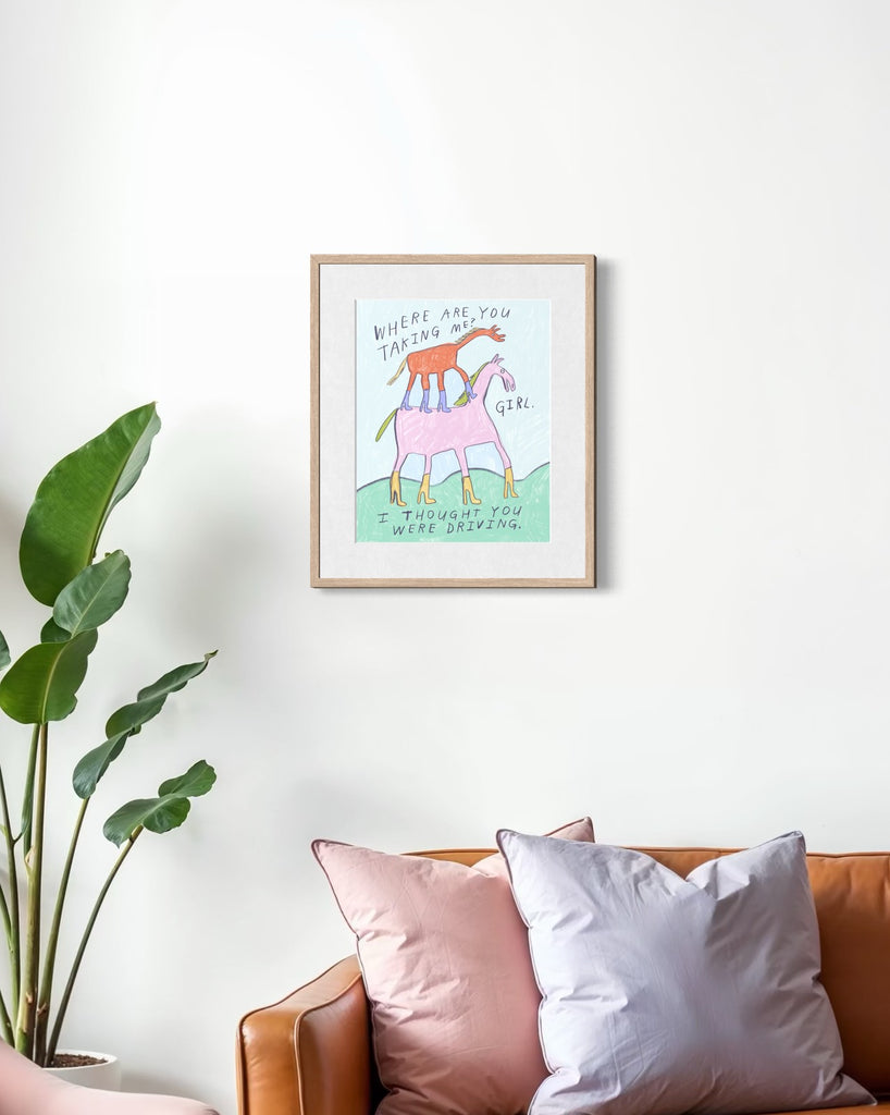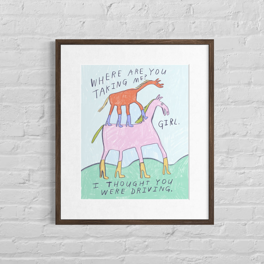 8"x10", 11"x14", or 16”x20” print. The smaller two sizes are printed by me on heavyweight matte paper using archival pigment-based inks. The larger size is too big for my fine art printer, so I outsource them, but they’re the same archival quality. All this basically means that it's a high quality print that'll last for 100 years or so without beginning to fade. Because that's vital with super important art like this.