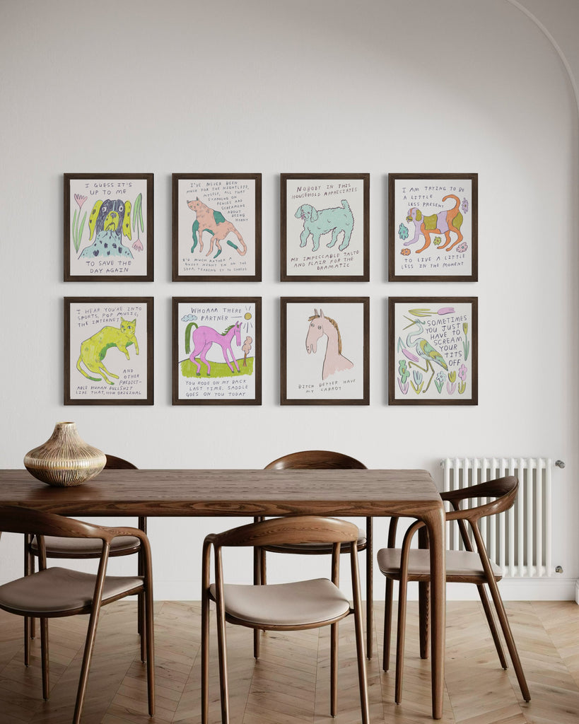 8"x10", 11"x14", or 16”x20” print. The smaller two sizes are printed by me on heavyweight matte paper using archival pigment-based inks. The larger size is too big for my fine art printer, so I outsource them, but they’re the same archival quality. All this means that these are high quality prints that will last for 100 years or so without beginning to fade. Because that's vital with super important art like this.